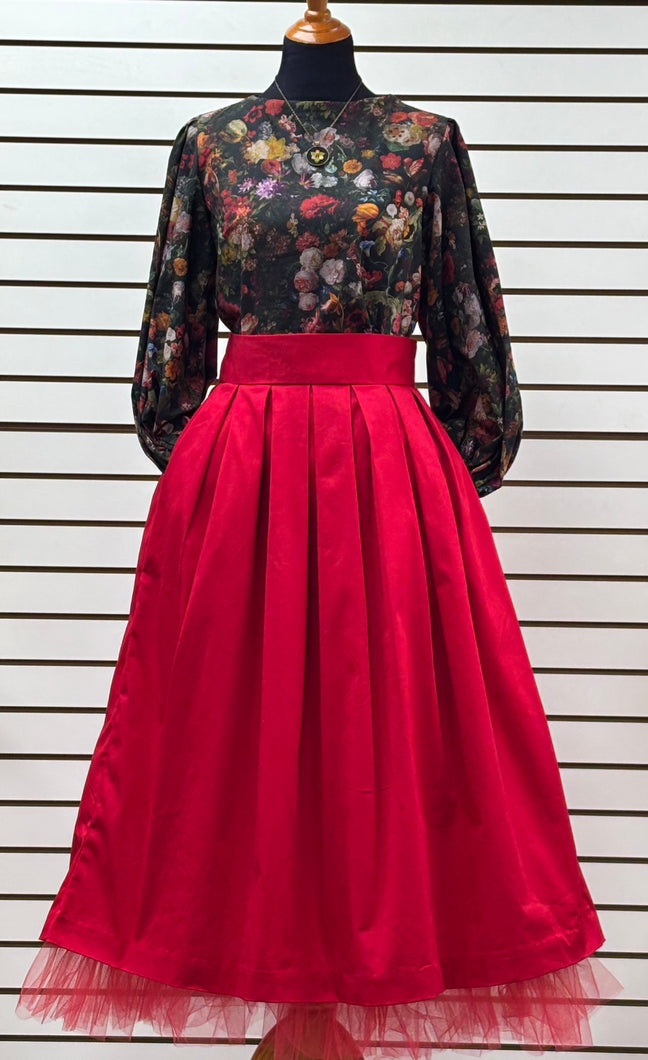 • *SOLD* Red Pleated Skirt - ONE ONLY fits medium or large