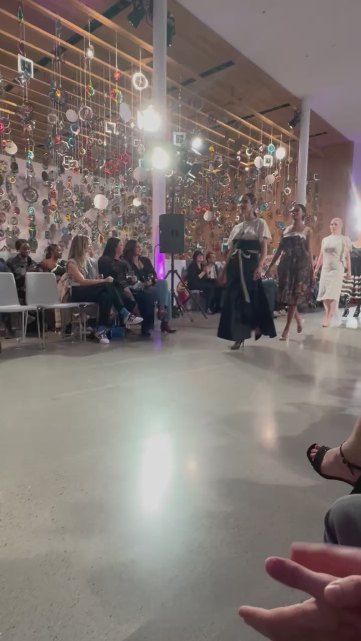 This piece was thoughtfully designed, hand sewn, and crafted in studio. Each garment in this collection is a unique art-to-wear piece.
